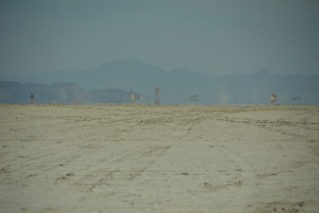 Now however, a huge part has been transformed into Black Rock City. From far we could see the first camps that had already been set up, and the big wooden man that gives the name to the festival.