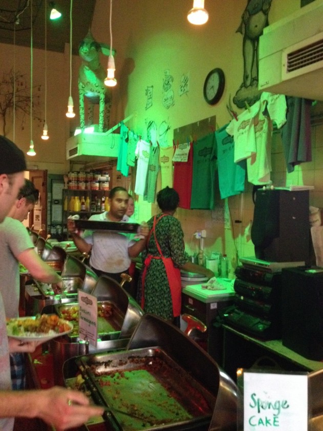 That restaurant, called Lentil as anything, was our target: a yummy self service buffet that offered Mediterranean salads, chickpea salad, herbal rice, coconut dahl…