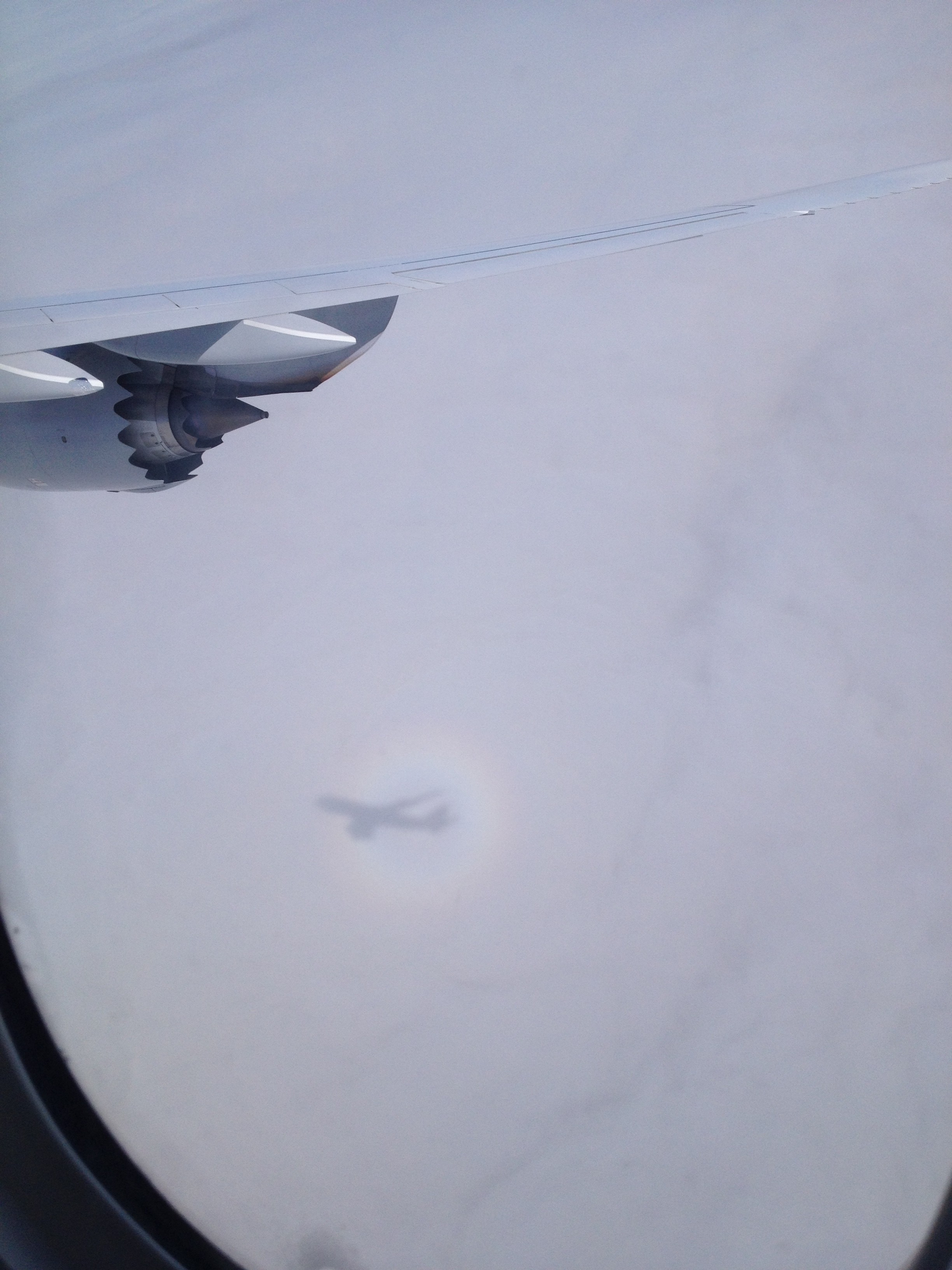 Final approach into FRA (with our shadow on the clouds)