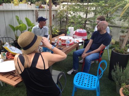Saturday then saw my San Francisco gang hang out in the backyard with BBQ, Margaritas and salads. We have done this countless times, and it’s fun to see everyone.