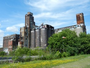 It was the port after all, so docks and warehouses, mills and rusty cranes are omnipresent. Train tracks criss-cross the park, and huge former mills or factories lines the canal and the bike track.