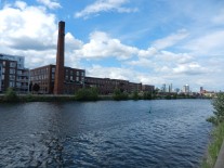 It’s ideal for joggers, bikers, dog owners… people relax in the grass or on the many wooden banks. Along the canal, there’s either old warehouses and abandoned factories, or newly transformed condos and lofts.