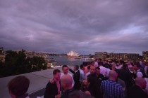 Finally, up on the terrace, the view was breathtaking. The Mega cruise liner that had blocked the view the day before had left on time so we would see both the Opera and the bridge fully. And we had an amazing view over the tens of thousands of party people below.