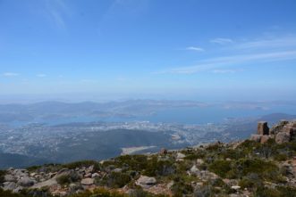 There are a couple of viewpoints: you can climb on the top, or follow a few walkways to the best lookouts. You overlook Hobart, the River Derwent estuary, Storm Bay and, on a clear day, up to 100 kilometers into the western part of Tasmania, most of which is one big National Park and protected land.