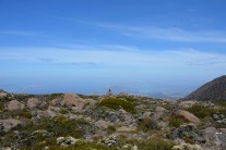 Anyway, back to the mountain. It’s a 22 kilometer drive uphill, a winding road – but I have done worse (Sabine: remember Sequoia National Park?). The scenery changes from the dry, Eucalyptus trees to dry bushes and smaller plants, to rocks.