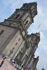 The Cathedral was built, for over 200 years, right on the site of the main Aztec temple, after the Spaniards had razed the former city of Tenochtitlan. (Or so they thought, as the temple was later located just to the left of it, and excavated.)